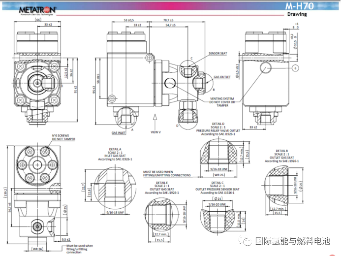 M-H70实现了一体化紧凑设计,其中包括了减压腔、调压腔、泄压阀,通气阀等。实现了真正“小型化”。美塔特龙二级减压产品保证用户可选择的流量范围大,输出设定压力可定制、范围大,可满足OEM客户的各种燃料电池不同系统的使用要求,从而可以满足乘用车、轻型到重型不同FCV车辆的应用要求。
